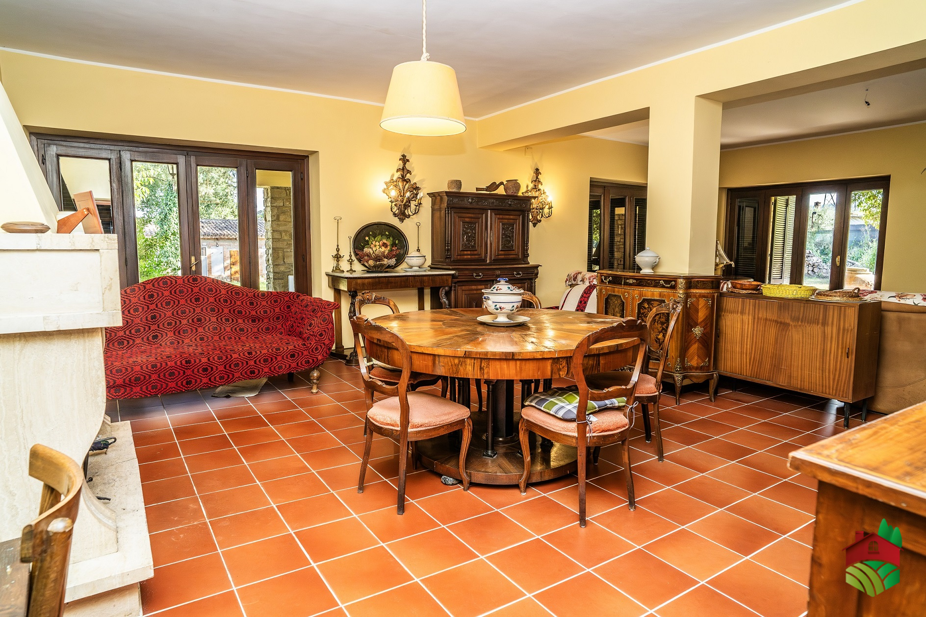 La proprietà comprende anche un garage, in corpo staccato rispetto al fabbricato di circa 115mq, un terreno di pertinenza di circa 13.500mq. ricco di piante di alto fusto, e di cui circa 1500 metri sono edificabili con altrettanta possibilità edificatoria.