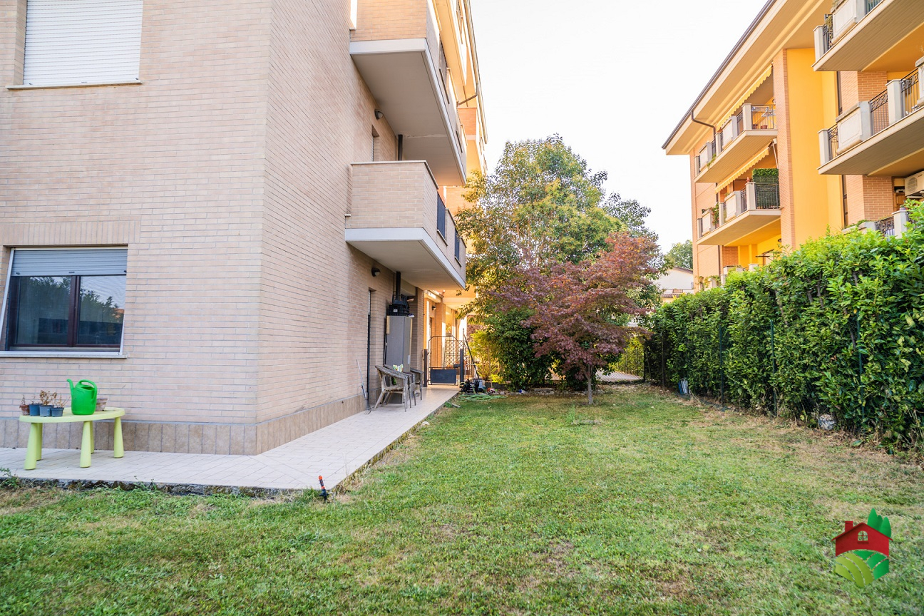A ridosso del palazzetto, su palazzina la cui costruzione risale al 2010, proponiamo in vendita appartamento trilocale sito al piano terra composto da: soggiorno con camino e angolo cottura, bagno di servizio con doccia, camera matrimoniale, bagno finestrato con vasca e cameretta. Dal soggiorno dell’appartamento, si accede al giardino esclusivo di circa 120mq., molto comodo per trascorrere le serate in compagnia.